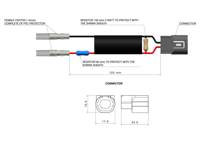 Die Rizoma-Verkabelung wird für die Montage von Rizoma-Blinkern benötigt.Es wird empfohlen, vor der Bestellung die technischen Zeichnungen zu kontrollieren. Jedes Kit enthält 2 Verkabelungen. Für die Montage von 4 Blinkern...