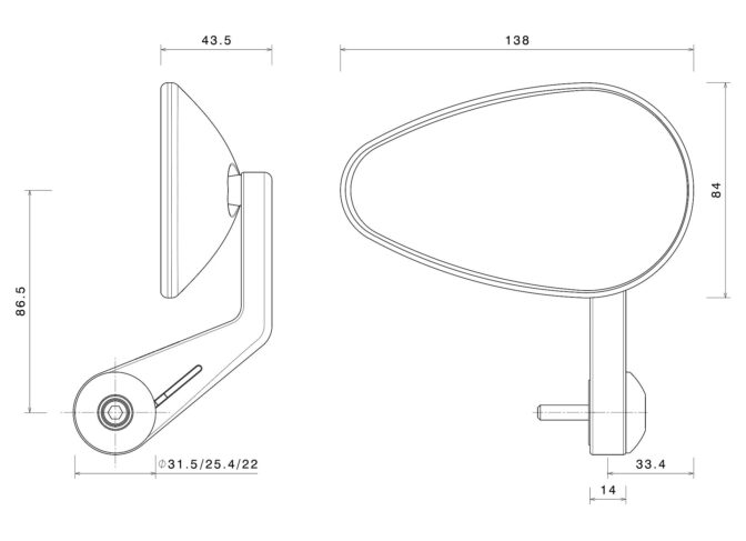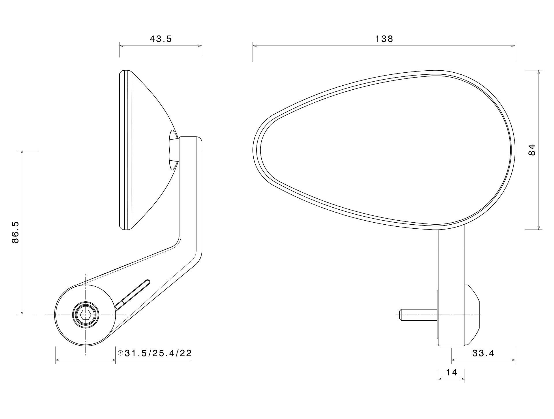 Die End-Mount-Spiegel sind mit allen Lenkern kompatibel, die ein M6-Endgewinde aufweisen. Für Lenker mit einem Innendurchmesser von 13,5 bis 20 mm wird der Montagesatz LP200B benötigt. Für Lenker mit einem Innendurchmesser von 21 bis 23 mm wird der Montagesatz BS830B benötigt.