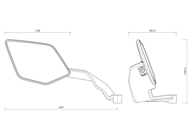 Stealth-Spiegel sind mit hochauflösendem Glas ausgestattet. Ihre konvexe Geometrie, kombiniert mit einer blauen Oberfläche, sorgt für außergewöhnliche Sichtbarkeit und bietet eine reflektierende Fläche von 7544 mm² für erhöhte Sicherheit und Präzision. Vollständig für den Straßenverkehr homologiert, erfüllen diese Spiegel die höchsten Leistungs- und Designstandards.