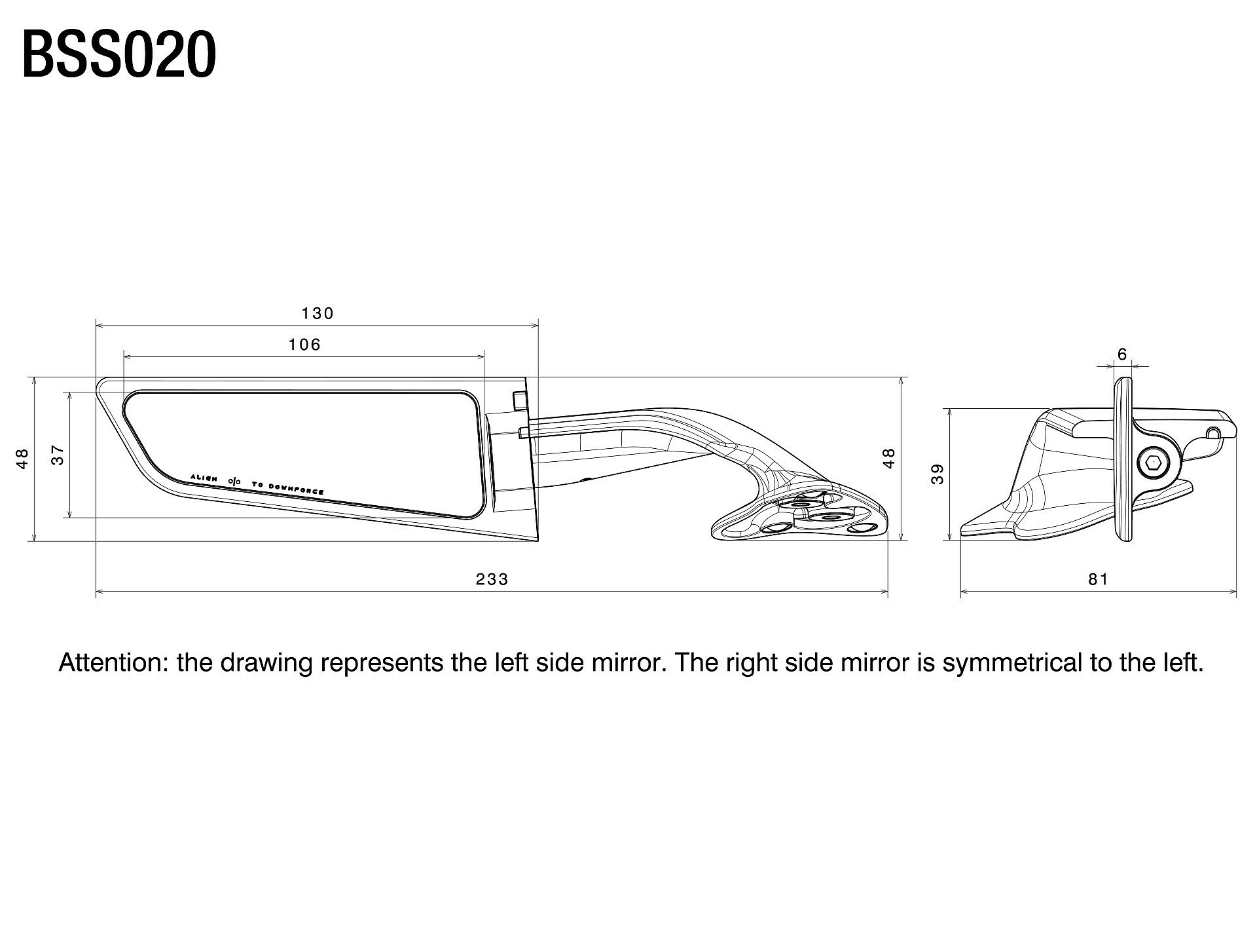 The special convex shape of this mirror increases the rear view angle by 80%.
