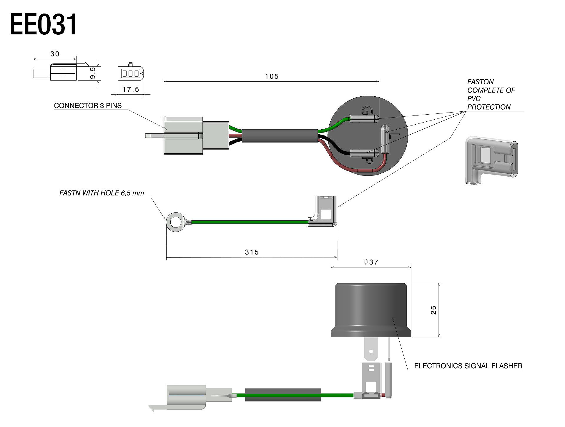 the EE031H kit can be used when flashing defects take place by replacing the OEM turn signal (bulb or LED) with others. This problem, generally, occurs when the installed turn signals run with different wattage between them.