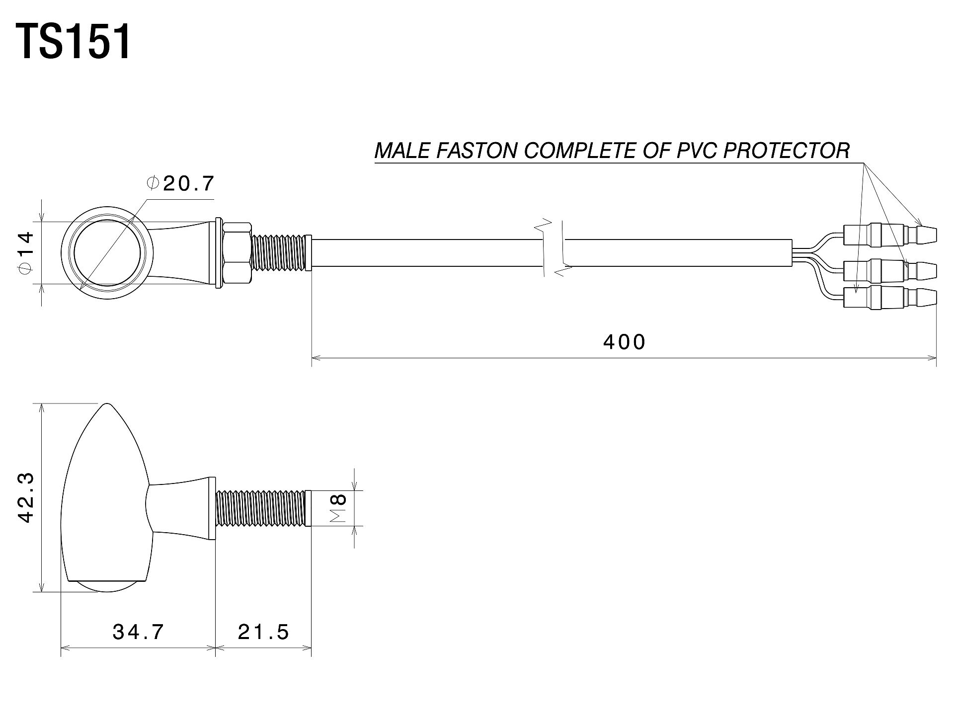 Funciones: INTERMITENTE (12 V - 2 W) / LUZ DE POSICIÓN DELANTERA (12 V - 2 W) - ROSCA M8