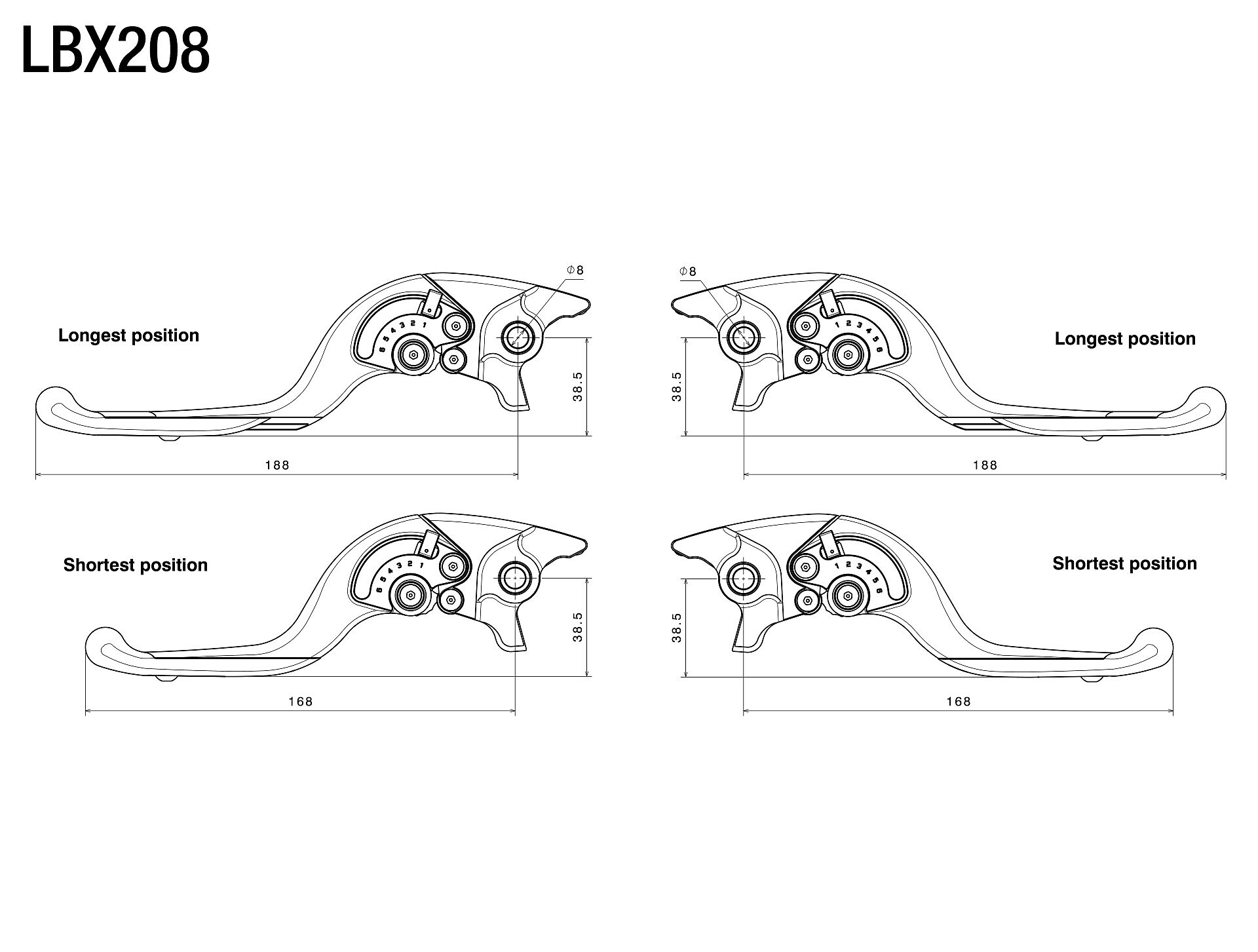 El kit de la palanca de freno incluye tanto la palanca del freno delantero como la palanca del freno trasero. Ambas palancas son Ajustables Plus: además del sistema de control de distancia palanca-perilla, colocado arriba para una mayor accesibilidad, también tienen un sistema deslizante que permite el ajuste de longitud de la propia palanca. Además, el kit incluye dos insertos de tecnopolímero que se utilizarán para eliminar el espacio que se crea cuando la palanca está en su máxima extensión (hasta 20 mm), evitando así el desgaste de los guantes.