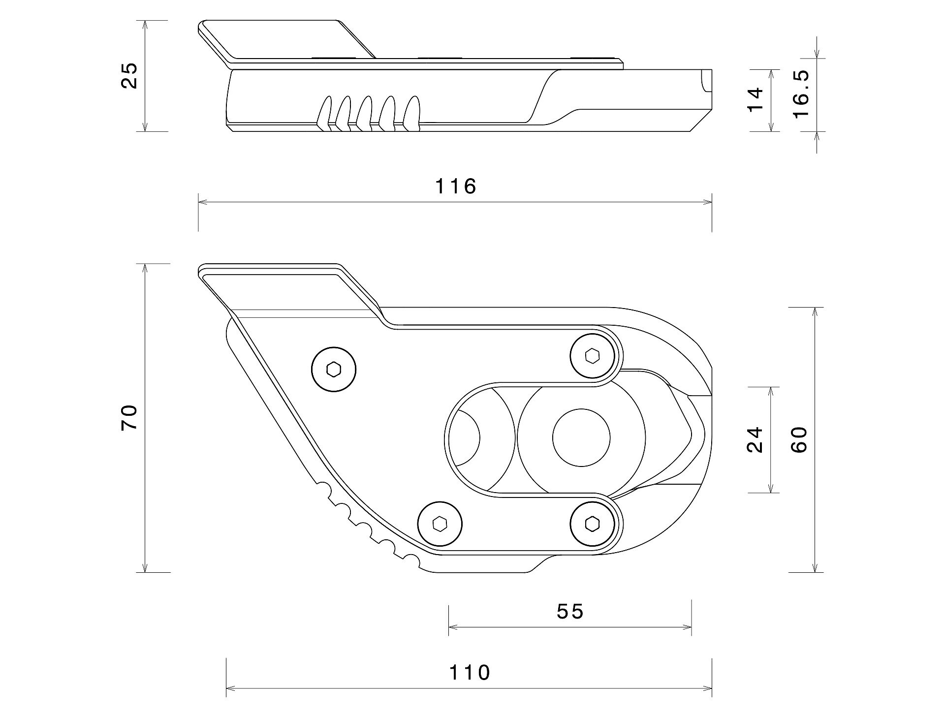 La base del caballete lateral agrandada Rizoma, en aluminio mecanizado a partir de un bloque...