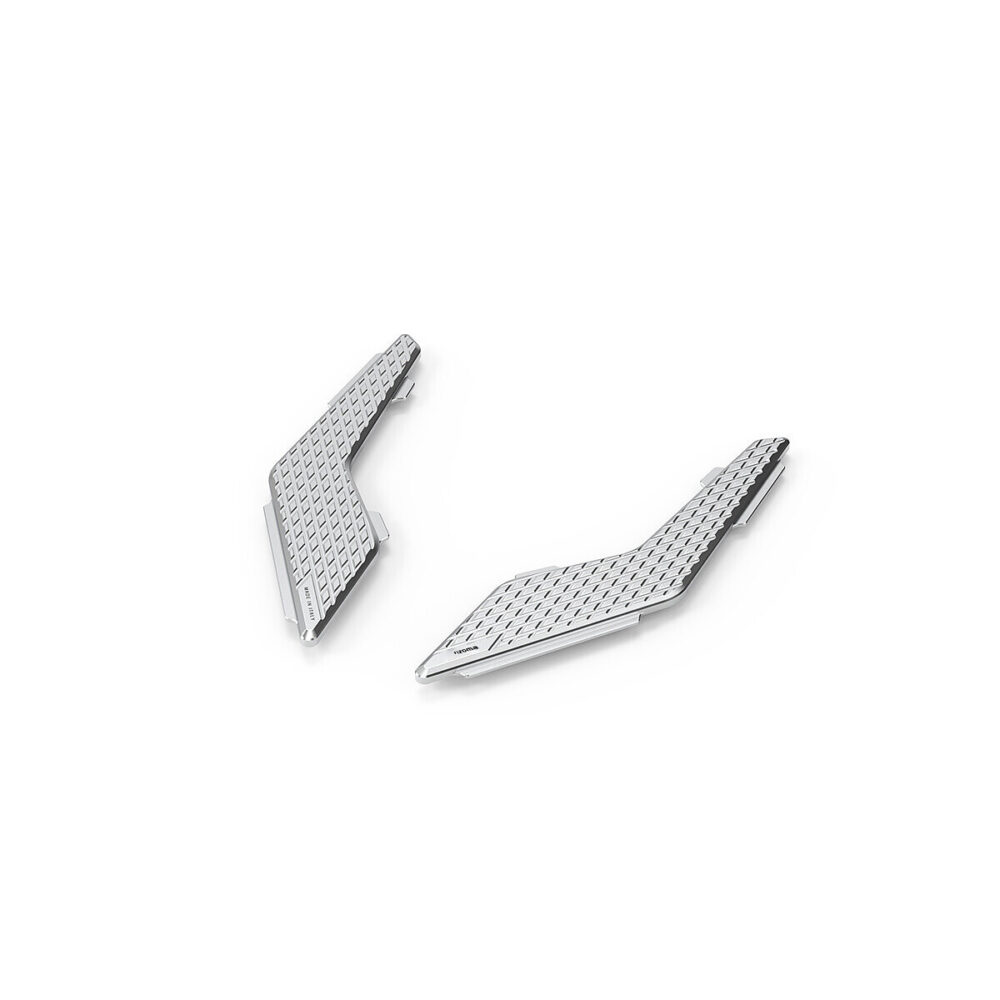 El kit de reposapiés delantero está realizado en aluminio, finamente anodizado para garantizar una mayor resistencia al desgaste, haciendo más confortable la conducción de tu T-Max. Seguridad y confort sin renunciar a la estética.