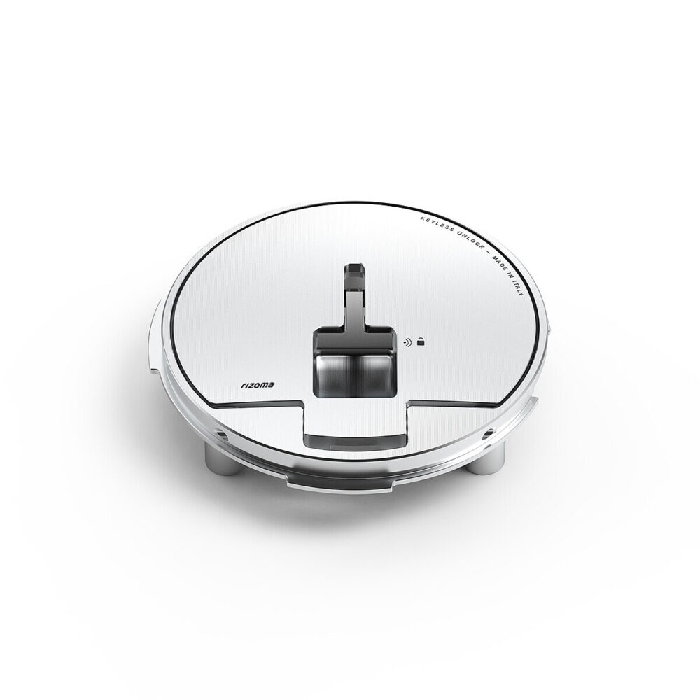 Le bouchon de réservoir d'essence Rizoma, entièrement taillé dans la masse, allie design, technicité, matériaux de haute qualité et sécurité. L'accessoire Rizoma offre une fonction d'ouverture automatique, sans appuyer sur aucun bouton, grâce à la reconnaissance de la clé du véhicule. Le propriétaire est reconnu lorsqu'il s'approche de sa moto grâce à un transpondeur RFID intégré dans la clé et à un récepteur intégré dans le bouchon. De cette manière, l'ouverture et la fermeture du capuchon sont possibles en soulevant simplement la poignée du capuchon.