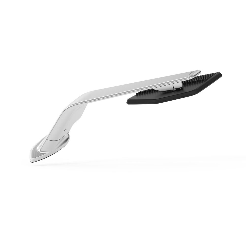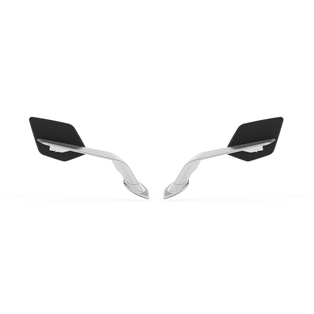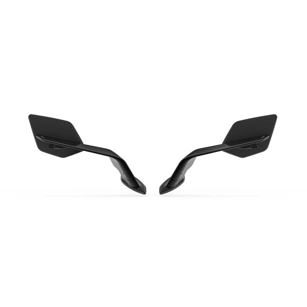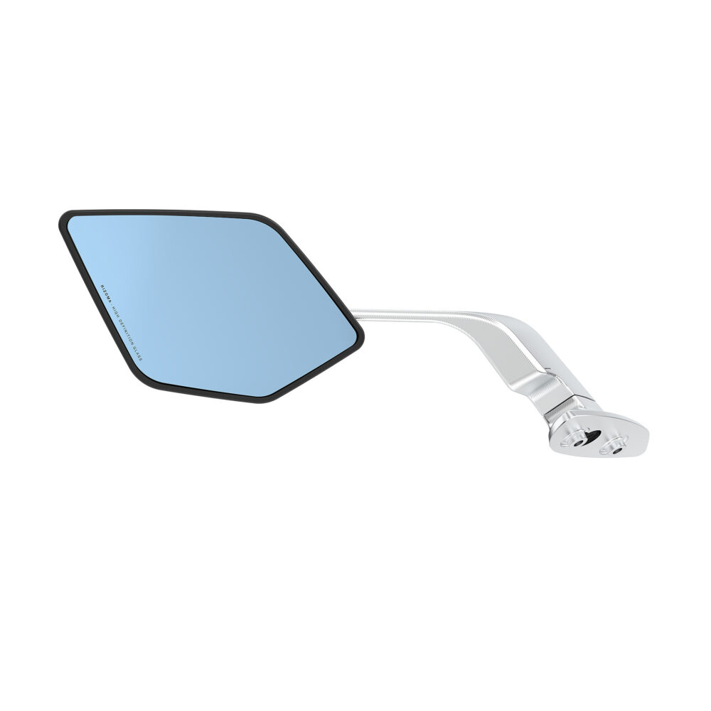 Corps en aluminium usiné dans la masse et anodisé, support de miroir en technopolymère avec une texture spécialement étudiée pour améliorer les performances aérodynamiques.