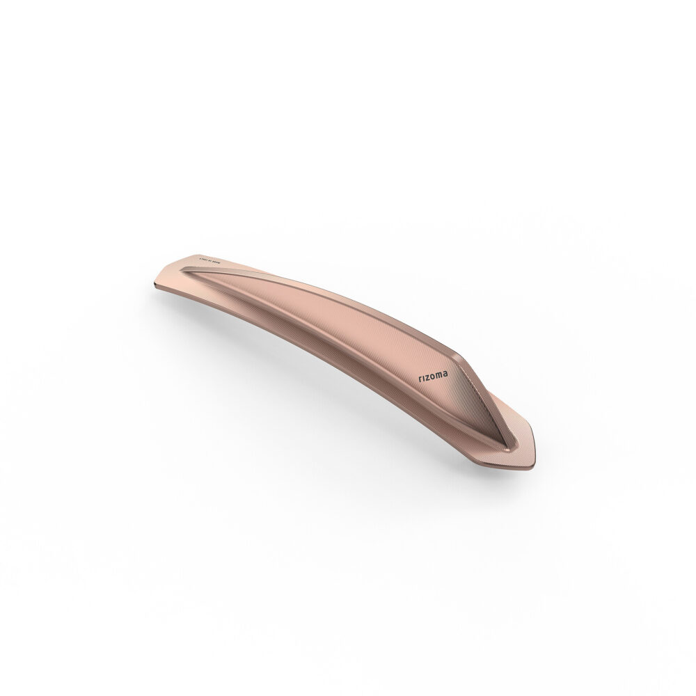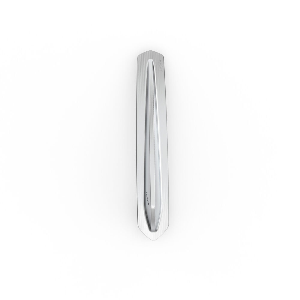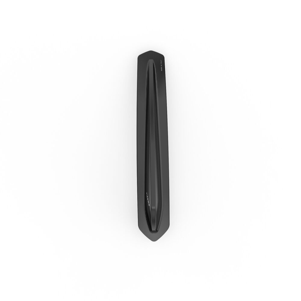 Il fregio per parafango anteriore presenta una particolare lavorazione 3d dell’alluminio. A partire da un blocco di alluminio pieno di 0,52 kg, si arriva a soli 0,065 kg di puro...
