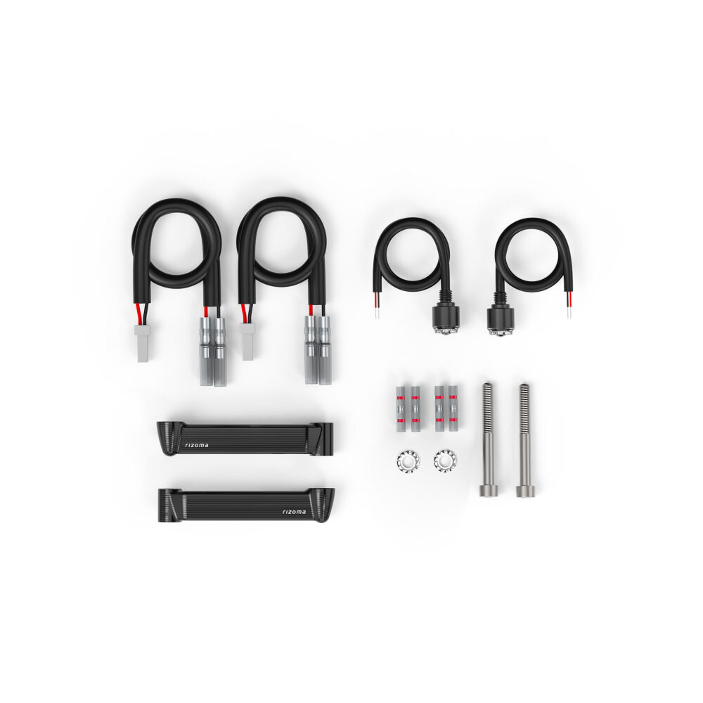 In caso di sostituzione degli specchi retrovisori OEM che prevedono indicatore di direzione integrato di serie, con specchi Rizoma senza indicatore integrato, tramite il Kit indicatori di direzione anteriori Rizoma Light Unit è possibile ripristinare questa funzione.