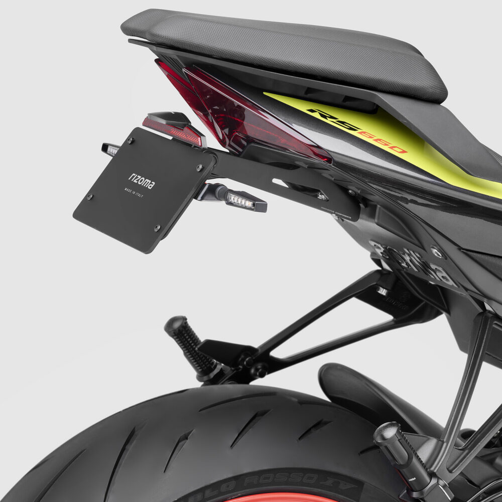 I porta targa Rizoma di tipo PTS sono compatibili solo con piatti targa di piccole dimensioni (ad esempio targa USA da 166x89,5 mm), in quanto sono stati sviluppati con un supporto del piatto più corto.
