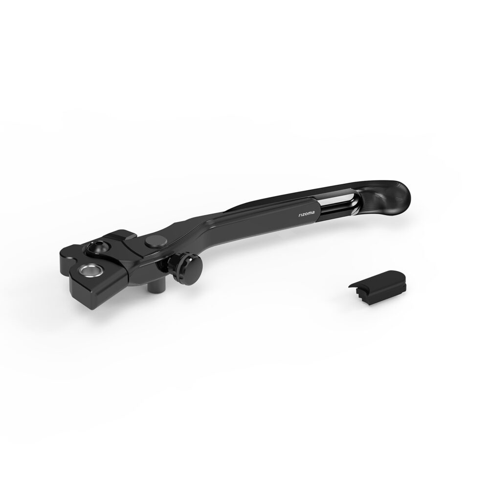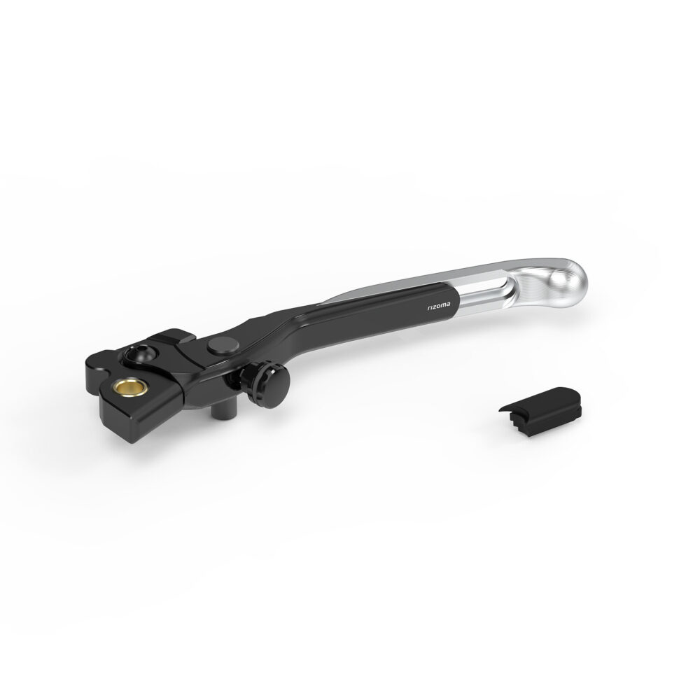 Il kit leve Rizoma comprende sia la leva freno anteriore che la leva freno posteriore. Entrambe sono Adjustable Plus: oltre al sistema di controllo della distanza leva-manopola, posizionato superiormente per una maggiore accessibilità, presentano anche un sistema a scorrimento che permette la regolazione in lunghezza della leva stessa. Inoltre, nel kit sono compresi due inserti in tecnopolimero da utilizzare per eliminare il gap che si crea quando la leva si trova nella sua massima estensione (fino a 20 mm), prevenendo così l’usura dei guanti.