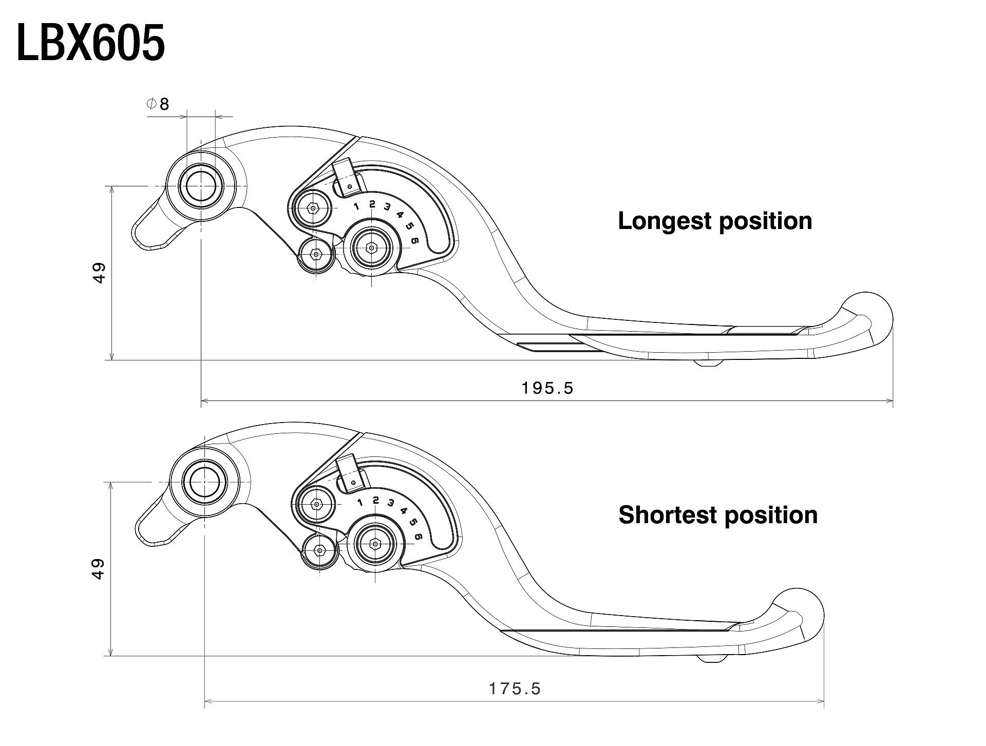 Le leve Adjustable Plus sono sono state progettate per offrire il massimo del comfort in termini di grip e regolazione in base al proprio stile di guida. In particolare, oltre al sistema di controllo della distanza leva-manopola, posizionato superiormente per permettere una maggiore accessibilità, è stato predisposto un sistema aggiuntivo a scorrimento che permette la regolazione in lunghezza della leva stessa. Inoltre, nel kit è compreso un inserto in gomma studiato per eliminare il gap che si crea quando la leva si trova nella sua massima estensione (fino a 20 mm), prevenendo così l’eccessiva usura dei guanti.