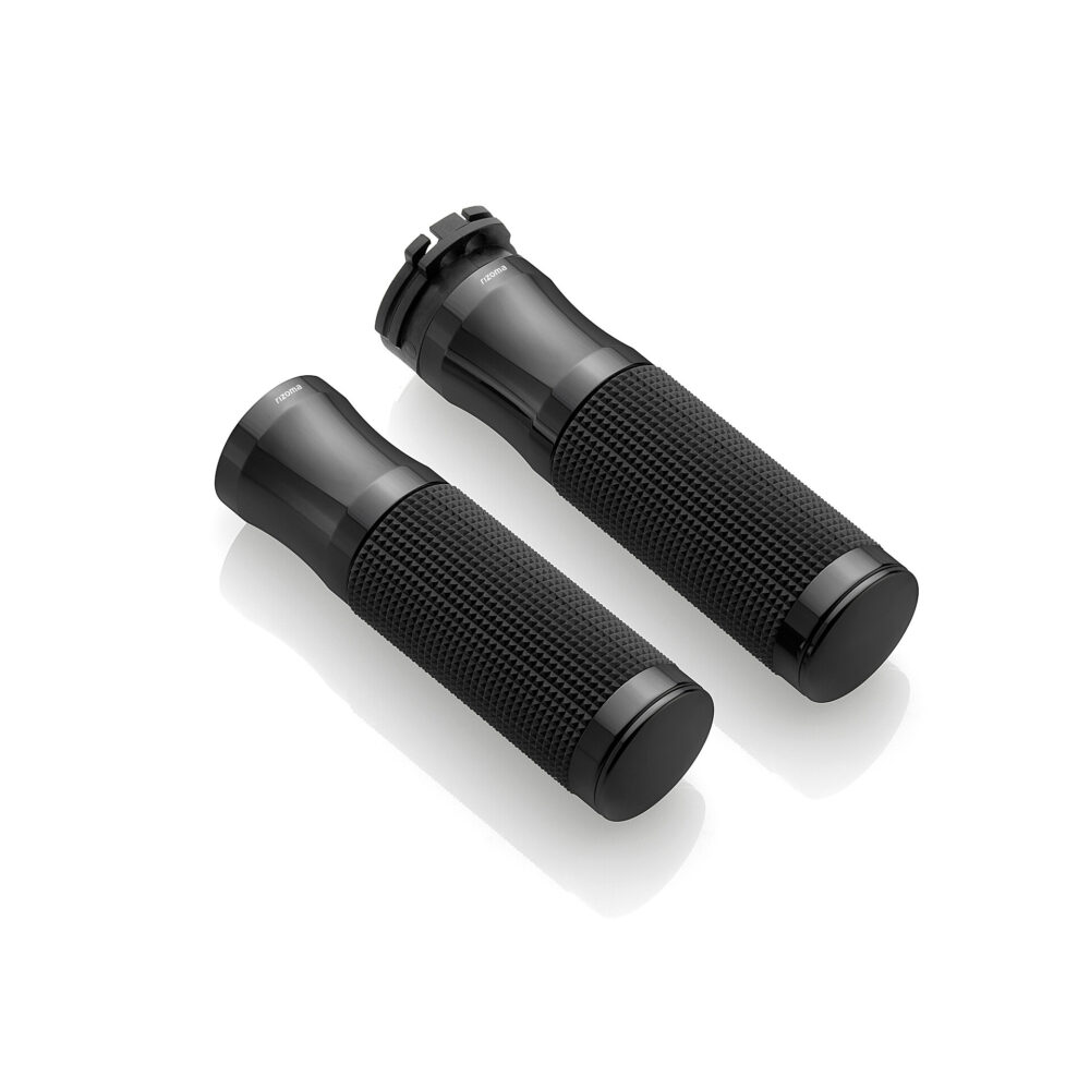 In alluminio, interamente ricavata dal pieno, la manopola SPORT 25.4 (Ø 25.4 mm / 1 Inch) è un punto di riferimento stilistico. Dotata di gomma racing che assicura grip e affidabilità, ha il terminale rimovibile per rendere possibile il montaggio di specchi, indicatori di direzione e terminali manubrio.