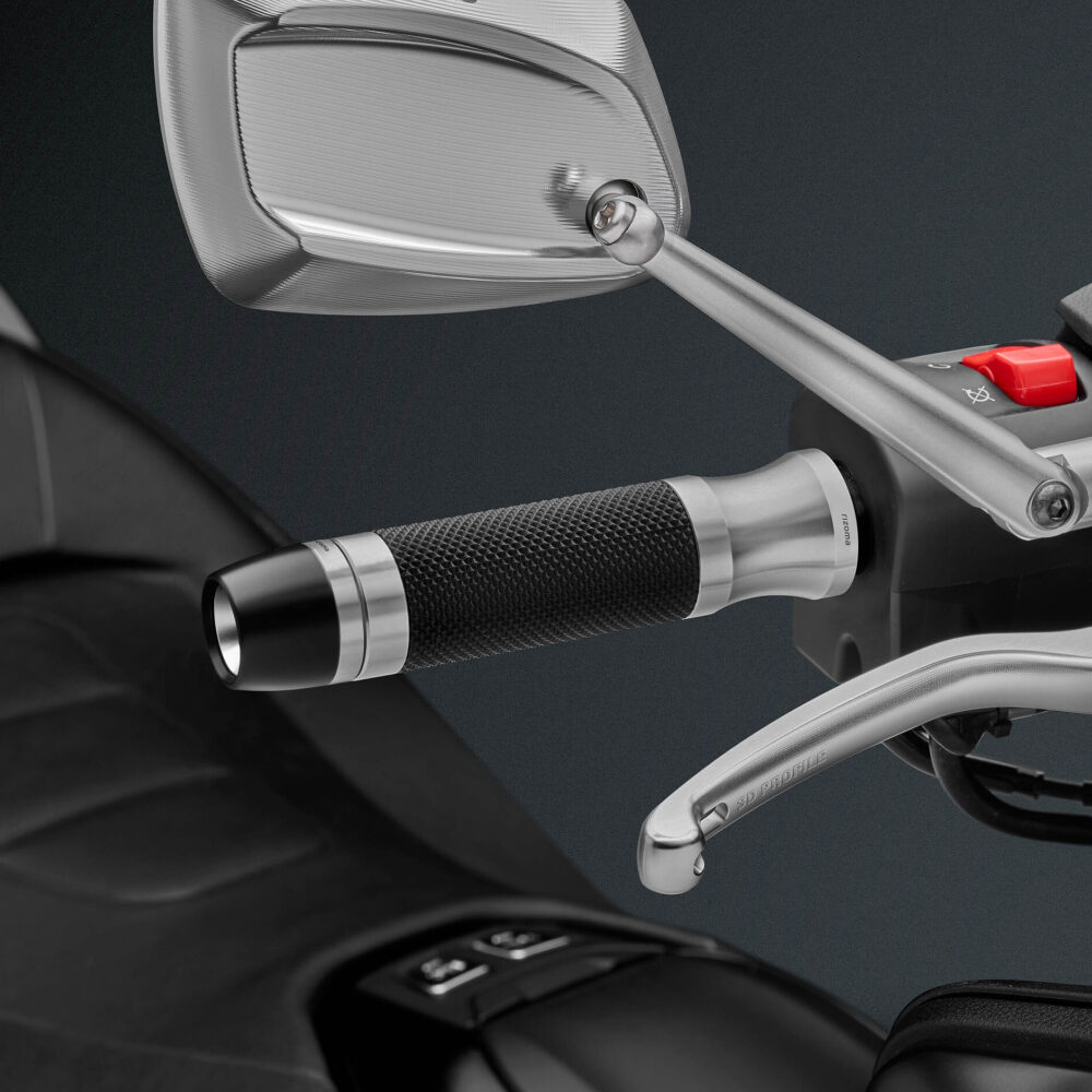 Tutti i terminali manubrio Rizoma sono prodotti in alluminio. Questo materiale, leggero e resistente, permette di ottenere una finitura in differenti colorazioni grazie al processo di anodizzazione e, in certi casi, porta ad un peso del prodotto Rizoma inferiore rispetto a quello OEM. Questo fa sì che il valore della vibrazione Hz cambi, passando da un range ad un altro. Su molti modelli di moto questa differente frequenza di vibrazione non è percepita dal conducente, ma in alcuni casi può essere avvertita. Rizoma consiglia di verificare sempre il peso dei terminali, specificato a questo scopo nelle informazioni tecniche del prodotto.