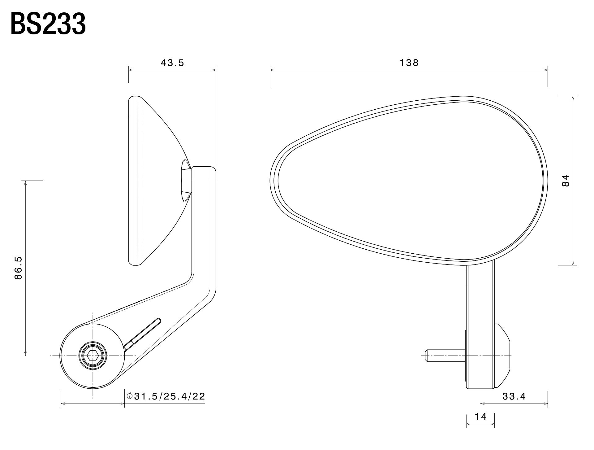 Gli specchi retrovisori End Mount sono compatibili con tutti i manubri che all'estremità presentano una filettatura M6. I manubri di diametro interno da 13.5 mm a 20 mm necessitano il kit di montaggio LP200B. I manubri di diametro interno da 21 mm a 23 mm necessitano il kit di montaggio BS830B.