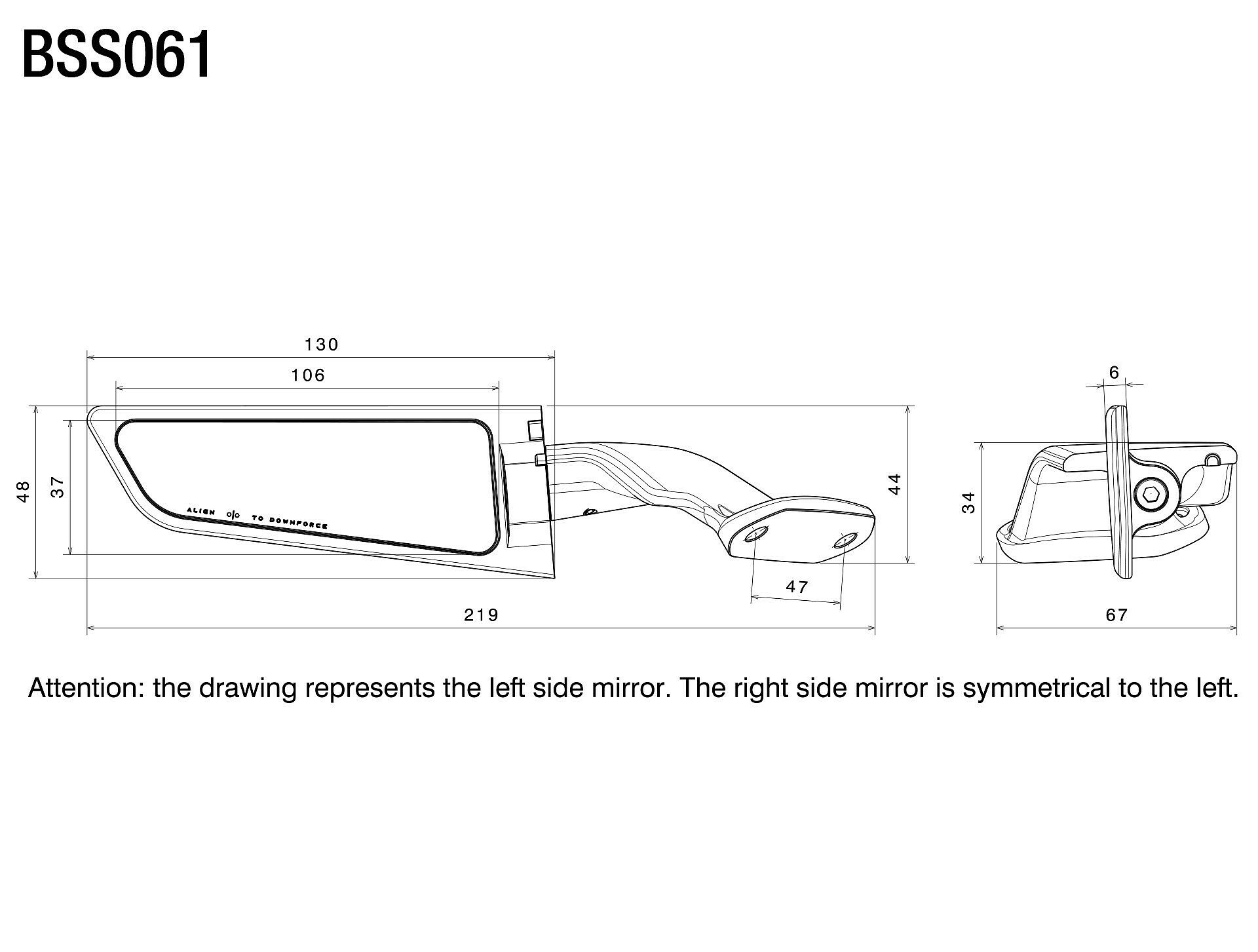 Due elementi: una base fissa integrata nella carena e un corpo mobile che custodisce il vetro. Un solo gesto e l’architettura si compatta, trasformando lo specchio in un’ala aerodinamica. Il risultato: deportanza tangibile, fino a 4 kg a 300 km/h. Fresato da un blocco unico di alluminio, rifinito con anodizzazioni profonde, è dotato di lente HD convessa azzurrata, per una visione nitida e senza riflessi.